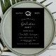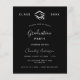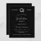 Um convite moderno e elegante para a festa de formatura. Um fundo preto, texto branco. Personalize e adicione um nome, ano e detalhes.