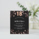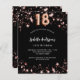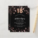 Um fundo preto clássico, decorado com estrelas douradas rosa. Personalize e adicione um nome e detalhes da parte. O número 18 é escrito com um script de estilo de balão. 1 folha = 1 convite impresso de borda a borda.