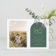 design ⭐ pelo Criador Zazzle LeahG®, fundador da Low Budget Wedding Network®. Parabéns no seu noivado. 📌 esta design para o seu conselho de humor de casamento no Pinterest e aproveite sua jornada de planejamento de casamento. A design aqui é uma bela arca floral, verde e dourada da Wisteria Púrpura, convite para casamento de fotos com código QR e detalhes extras no verso. Adicione sua recepção de casamento, rsvp, registro de presentes, alojamento de hotel e mais detalhes, conforme necessário. ⭐ Note que a minha gama de orçamentos inclui vários tipos de papel e carstock - veja o meu guia nos diferentes tipos de papel/cartolina aqui: https://www.weddingdesignchic.com/2022/04/budget-invitations-on-zazzle-by-leahg.html.