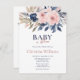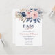 Torne seu chá de fraldas inesquecível com este sofisticado convite para chás de fraldas. A design apresenta belas flores cor-de-rosa e marinho, fazer-as na moda e charmosa, enquanto a frase "Bebê na flor" acrescenta um elemento lúdico à carta. Use as ferramentas de design para personalizar o texto. Também disponível como download digital.
