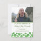Comemore e celebre a vida de seu ente querido com nosso requintado cartão de programa de funeral irlandês. Delicadamente confeccionado, apresenta um fundo branco emblemático adornado com trevos de shamrock em aquarela verde e uma preciosa fotografia. A frente do cartão exibe os detalhes do funeral, enquanto o verso contém a ordem da cerimônia sobre um fundo verde. Adicionando um toque pessoal, incluímos um bilhete de agradecimento personalizado para seu conforto e conveniência em tempos de luto.