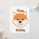 Este convite exibe as palavras "Feliz Aniversário" em uma fonte de impressão única com letras laranjas e contorno preto com um rosto de cachorro Shiba Inu no centro neste tema e estilo de aniversário. Impresso em um papel clássico, completo, de 17,5 pt de espessura com acabamento fosco não revestido e textura de casca de ovo, feito e impresso nos EUA com "É Uma Festa" impresso no verso.