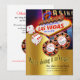 Convite com recorte de foto Las Vegas mostra o entusiasmo daquela cidade de Nevada com o glamuroso e emblemático sinal de Boas-Vindas de Vegas, fichas de cassino VIP com os nomes seus e do seu cônjuge (entre em contato comigo para adicionar seus nomes às fichas) e dados com coração. Fácil de personalizar - use o botão "Personalizar" para adicionar seu próprio texto e foto. Para informações ou pedidos, envie um e-mail para: cheryl@cheryldanielsart.com/contact. Adesivos, lembrancinhas de ímã e mais estão disponíveis.