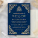 Convite Ornamentado Floral Casamento Islâmico Azul e Doura