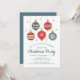 Esta elegante design de feriados apresenta Enfeites de natal festivos em vermelho e azul cercados por flocos de neve ouros. Personalize com os detalhes do seu Convite de festas de Natal alinhados ao centro, embelezados com o "Natal Party" em um roteiro de caligrafia azul. Nos convites inverso está azul sólido. #natal #feriados #sazonal #convite #convida #ornamentos #decorações #baubles #neve #vermelho #azul #branco #vintage #elegante #na moda #watercolor #stationery #festivo #feliz #christmaseve #janto #christmaspartimento #christmasevepartimento