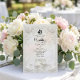 Set a tone of timeless luxury for your black-tie union with this Neoclassical design, capturing the essence of Old World romance and museum-quality art.This design features a sophisticated trompe l'oeil visualization of a sculpted limestone or marble frieze. The artwork mimics the look of a bas-relief carving in shades of warm ivory, cream, and beige, creating a realistic play of light and shadow without actual physical texture. The ornate frame includes 3D-style renderings of acanthus leaves, blooming white roses, graceful swans, and a central cameo silhouette of a bride and groom, overseen by an angel figure playing the violin. The typography contrasts sharply in formal black serif and elegant calligraphy.This is a flat printed image with a faux sculpture effect, not actual raised material or stone.