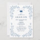 Convite Ornate Blue Floral Grace 4 Photo Graduation Party