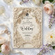 Transport your guests to a timeless era with this sophisticated design featuring a romantic garden scene in a stunning monochromatic palette.This design features a highly detailed, digitally created illustration of a formal garden landscape. The artwork simulates the look of a sculpted ivory carving or bas-relief, utilizing shadow and light to create a faux 3D appearance in shades of cream, beige, and off-white. The scene depicts a romantic bridge surrounded by lush hanging wisteria, blooming roses, and two white doves in flight. The text is presented in a stark black traditional serif paired with elegant calligraphy script for high contrast and readability against the light background.