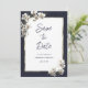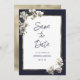 Convite Orquídea branca azul-marinho de luxo Salve a data