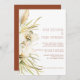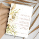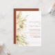 Trendy watercolor floral, palma tropical, e convite para o casamento de erva pampas com uma tipografia de terracotta de estilo moderno sobre um elegante fundo branco e elegante. +++++ Adequado para jardins de Verão ou para casamentos contemporâneos de destino no deserto à beira-mar.