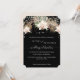 Conjunto de convite de casamento moderno floral de orquídea branca cintilante no estilo Boho tropical. O fundo preto ébano escuro é um rico contraste com luzes cintilantes brancas. Lindos para um tema de casamento noturno e um casamento inspirado no estilo boêmio da selva, tropical à beira-mar. A arte floral de orquídea pintada à mão em aquarela e folhagem de palmeira e filodendro de folha partida foi criada pela artista internacionalmente renomada e licenciada, Audrey Jeanne Roberts. Direitos autorais.