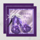 As mulheres orquídeas roxas, calçados de alto salto apresentam um lindo par de calçados de alto salto roxos e lisos com uma bela orquídea roxa no topo. Este calçado roxo de alto salto e convite de aniversário orquídeo é facilmente personalizado para o seu evento adicionando detalhes do evento, estilo de fonte, tamanho e cor de fonte e texto.