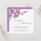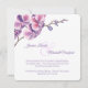 Convite para casamento de flores de orquídea roxa com texto de roteiro e logotipo de nome de casamento. O padrão no verso é opcional.