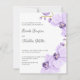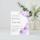 Uma combinação de fonte script e serifa em cinza tradicional sobre um fundo branco elegante adornado com um ramo de orquídea roxa delicada e flores torna este convite perfeito para qualquer tipo de casamento. Muito fácil de personalizar usando o modelo. O verso do cartão tem um espaço para texto extra como RSVP, detalhes do casamento, site do casamento e mais. Cor e fonte são facilmente alteráveis para atender às suas necessidades.