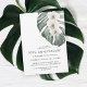 Planeje uma bela celebração do 50º aniversário de casamento com o tema tropical com esta design botânica elegante. Apresenta um trio de elegantes orquídeas brancas e uma bela folha Monstera em tons de aquarela. A design é simples e elegante com um olhar neutro minimalista energizado pelos elementos botânicos tropicais. Quer estejamos a comemorar um ouro de aniversário em volta de uma piscina ou dentro e em volta de uma área costeira, este design com estilo insular e sofisticação floral. Personalize o modelo de texto fácil de usar com os detalhes do evento.