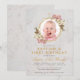 Este convite geométrico floral para uma menina do batismo e do primeiro aniversário tem uma foto de menina marcadora em um quadro irregular de ouro, com buquês de flores de orquídeas brancas e cor-de-rosa para cima, para a direita e para baixo, sobre dois hexágonos de ouro que se sobrepõem, com uma cruz de ouro no topo. (A cruz pode ser suprimida se pretender utilizar o convite para um aniversário regular) A ocasião e o nome são ouro, o resto do texto encontra-se em bonés de cinza. O nome é escrito em um roteiro caligráfico elegante. O fundo (e o fundo) é mármore branco. O buquê de flores com orquídeas cor-de-rosa e brancas é de um cartão postal antigo de Bertha Maguire (1862-1910), agora no dominio público. A foto marcadora de uma menina de cor-de-rosa é de Vera Kratochvil do Dominio público Pictures e tem modelo de lançamento.