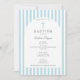 Um belo design do batismo com um arco moderno com azul empoeirado Cruz e fundo listrado e um ícone ortodoxo grego da Virgem Maria no verso do cartão. Um design religioso ideal para o Natal do Batismo de um bebê. Os artigos de papelaria e decoração correspondentes podem ser vistos nesta coleção de designs.