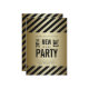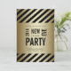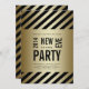 O cartão liso do convite de festas moderno de 2014 vésperas de ano novo com ouro preto do texto, o preto e o metálico listra o fundo (nota: ouro metálico efeito impresso da foto). Adicione suas informação do partido da véspera de ano novo e opção de papel. Projete por Elke Clarke©.
