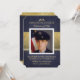 Azuis marinhos da cerimonia comemorativa & convite da foto da elegância do ouro