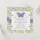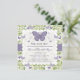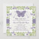 Adicione a noiva para estar inicial ou monograma nestes lavanda bonito e chás de panela roxos verdes da borboleta com um fundo do damasco do verde do primavera e uma beira e uns corações scalloped. Personalize a parte traseira do convite com o nome da noiva ou o que texto você quer. Projete o © Chrissy H. Estúdio, LLC. Todos os direitos reservados.