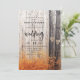 Os dois amantes da Design das árvores esculpidas caem na floresta com a imagem da fotografia de natureza selvagem bonito e suave. Uma paisagem russa ao ar livre para um abrigo aventureiro, montanha, casamento de retirada, em laranja, dourados, cinzentos, castanho e branco. Apresentando 2 carvalhos com coração e iniciais de casal entalados em suas redondezas por uma floresta de pássaros. Folhagem de outono e folhas no chão, com muitos ramos e galhos. Uma design romântica para o outono - com foto personalizada nos Convites de Casamento! ~ Cheque meu compro para ver a suíte inteira para este design!