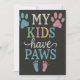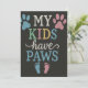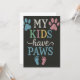 Design ao estilo Chalkboard com a citação engraçada "Meus Filhos Têm Patas", com impressões coloridas de pata e pegadas de bebês. Perfeito para mães de cães, mães de gatos, e todos os amantes de animais de estimação que veem seus animais de estimação como família. Excelente para notebooks, adesivos, cartões ou presentes.