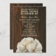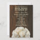 Um chá de panela que caracteriza uma imagem dos rosas brancos no fundo sobre um fundo do barnwood do marrom escuro. Personalize o texto com detalhes de sua ocasião.