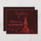 Um design vermelho elegante, este cartão do convite caracteriza um fundo de Borgonha, sparkles do vermelho e um vestido vermelho do sequin. Incluído é um modelo para adicionar seu nome, com "você será minha dama de honra?" no texto bonito. Coloque sua ordem hoje!