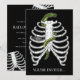 Design de Halloween apresentando a ilustração divertida de Destei de uma gaiola de costelas junto com um cobra verde e uma teia de aranha. A cor de fundo é preta, mas pode ser alterada para qualquer outra cor, se assim o desejar. Do outro lado há mais duas designs de gaiolas (sem o cobra) junto com áreas de texto personalizáveis.