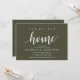 Our first home, new home housewarming party invitation card ("our first home") in olive green theme, with cute little heart. Planning a housewarming party in celebrating your new home with your family and friends? Invite your guests with this beautiful and perfect Rustic calligraphy themed housewarming party invitation card.