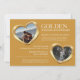 50º aniversário de casamento coloridos. Belo efeito de ouro líquido forma gráficos impressos em gráficos de 50 anos de casamento. Personalize com sua festa de aniversário de casamento duas fotos na frente e mais duas fotos nos corações nas costas. O 50º aniversário é tradicionalmente conhecido como o casamento do ouro e está associado ao ouro e o coração nesta design simboliza o amor. Outros itens correspondentes estão disponíveis. Gráficos originais e design por Sarah Trett para www.mylittleeden.com e www.mylittleedenweddings.com no zazzle