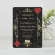 Design de carta exclusivo com tema Casino Royale e Art Deco dos anos 20. Apresenta estilo art déco vintage, uma moldura falsa de ouro ao estilo de Hollywood antiga dos anos 1920 com Fleur-de-lis, par de dados, naipes de cartas de baralho (simulando cartas de baralho), sobre um fundo preto dourado com padrão Art Deco. São usadas palavras especiais como num jogo de pôquer. No verso, padrão Art Deco em falso ouro, código QR e iniciais entre os naipes das cartas de baralho. Use a ferramenta Personalizar para adicionar suas informações. Para mais, visite minha Coleção de Cassino.