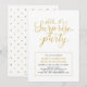 Celebre seu dia especial com este modelo de convite de festa surpresa simples, mas elegante. Este design apresenta tipografia elegante "shhh... é uma festa surpresa" e moldura simples em textura de folha de ouro. A cor do fundo é definida como branco, mas você pode alterá-la. Perfeito para uma festa de aniversário de casamento com tema ouro moderno.