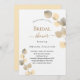 Um fundo branco decorado com ouros de eucalipto. Personalize e o nome da noiva a ser e os detalhes da festa. Letras pretas e ouros coloridas. Fundo: fundo colorido do ouro.