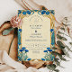 Um refinado Art Nouveau inspirou design de casamento com flores azuis marcantes, enquadradas em detalhes botânicos do ouro. A elegância vintage aliada a fortes sotaques florais cria um eterno, mas artístico, perfeito para casais que buscam um estilo de casamento sofisticado e romântico.