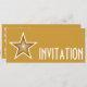 Design moderno com ouro "brilhante" e estrela branca sobre fundo amarelo escuro. Convite com um design personalizável para personalizar com seu próprio texto, imagens e ideias. Note que esta é uma imagem impressa criada usando fotografias originais e técnicas digitais, que ela não brilha ou contém faíscas reais.
