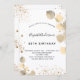 Para uma elegante festa de aniversário 50th (ou qualquer idade). Um fundo branco na moda, decorado com ouro de eucalipto e poeira falsa dourada. Personalize e um nome e detalhes da festa. Letras pretas coloridas.