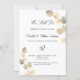 Um fundo branco decorado com ouro eucalipto, prigs. Personalize e seu nome e detalhes da cerimônia. Voltar: fundo do ouro.