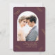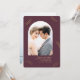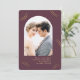 Este belo convite de casamento de duas fotos apresenta uma elegante impressão de simples wisps curvados de cor de ouro em um fundo escuro de ameixa. A frente inclui uma fotografia em forma de arco geométrico de tendências, e a parte de trás é uma foto de cheio sangrada do casal feliz.