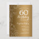 Ouro Floral 60º Convite de aniversário. Design minimalista moderno com desenhos botânicos em destaque e letra de script de tipografia. Simples trendy convida cartão perfeito para uma festa de na moda. Pode ser personalizado para qualquer idade. Impressos convites Zazzle ou modelo de impressão digital instantânea para download.
