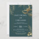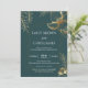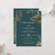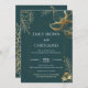 Cartões de convite para cerimônia de casamento moderna para sua ocasião especial! Apresentando flores ouros com folhas pequenas decora a fronteira do seu cartão de casamento e quadros geométricos de ouro poligonais de design em seus detalhes de celebração de casamento em um rico fundo verde. Personalize seus detalhes de casamento, data, local e muito mais na frente. Projetado para coordenar com nosso Dourado Blooming | Coleção moderna de convites para casamento e eventos.