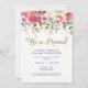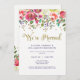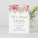 Esses convites adoráveis de cerimônia pós-casamento apresentam um lindo design de aquarela floral rosa, roxo e verde, com confetes e tipografia com aparência de ouro falso.