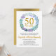 Este convite orçamental para o seu 50º aniversário de casamento apresenta uma delicada coroa floral verde feita de bluebells, plantas e flores lilás. O convite pode ser facilmente personalizado com as suas informações especiais sobre renovação de votos de ouro. A parte de trás do convite mostra as datas de aniversário em texto branco elegante no fundo do ouro. Os suprimentos de festa e artigos de papelaria correspondentes estão disponíveis na coleção "50th Wedding Anniversário Bluebells Wreath Cards and Party Supply".