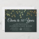 Nossos elegantes convites de festas de aniversário em verde-chico e ouro apresentam um fundo verde-caçador escuro com cordas de folhas falsas de ouro no topo, e "Saúde a xx anos" na tipografia de gráficos de caligrafia. Personalizar com qualquer aniversário de marco; exemplo mostrado para um aniversário de 50 anos. Personalize com os detalhes da festa de aniversário em letras brancas.