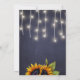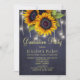 Modelo de convite para na moda de festa de formatura de estilo russo na meia-noite escura no fundo do quadro azul de marinho apresentando grandes buquês de girassol de ouro amarelo e cordas de luzes cintilantes. Preencha suas informações nos pontos, Você pode optar por personalizá-las mudando ainda mais as fontes e as cores das letras. — O convite é adequado para festas noturnas de graduação de jardim/quintal rústico. — Se precisar de assistência, por favor, entre em contato comigo!
