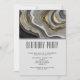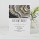 Um convite de casamento moderno e elegante. Com um design abstrato apresentando uma imagem que se assemelha a um geodo de ágata. Dourado, cinza, branco e preto se misturam formando ondas elegantes de cor. Perfeito para transmitir um ar de classe e elegância.