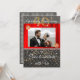 Convite Chic Preto e Dourado com seda vermelha apresenta a fotografia do casal. A imagem é decorada no canto superior esquerdo e inferior direito com um broche de diamantes dourados e vermelhos.