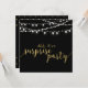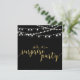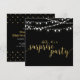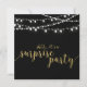Celebre seu dia especial com este modelo de convite de festa surpresa sofisticado. Este design apresenta caligrafia texturizada em dourado elegante e luzes de corda com fundo preto. Perfeito para uma celebração de aniversário de casamento em um quintal moderno.