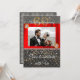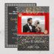 Convite Chic Black e Gold com seda vermelha apresenta a fotografia do casal. A imagem é decorada no canto superior esquerdo e inferior direito com um broche de diamantes dourados e rosados.