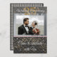 Convite preto e dourado com seda prateada apresenta a fotografia do casal.